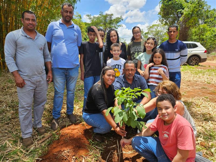 Família plantando os ipês-brancos. Crédito: Michella Reis