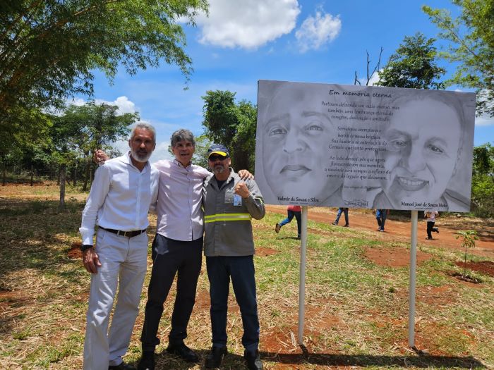Em frente à portaria, foi instalada uma placa que honra e celebra a história desses colegas tão queridos. Ao lado dela, duas mudas de ipê-branco — árvores típicas do Cerrado que florescem justamente no período de estiagem — foram plantadas, criando um espaço simbólico de homenagem e memória. Agora, quem entra na Reserva Ecológica do IBGE é recebido por esse gesto de reconhecimento, que une natureza e gratidão.